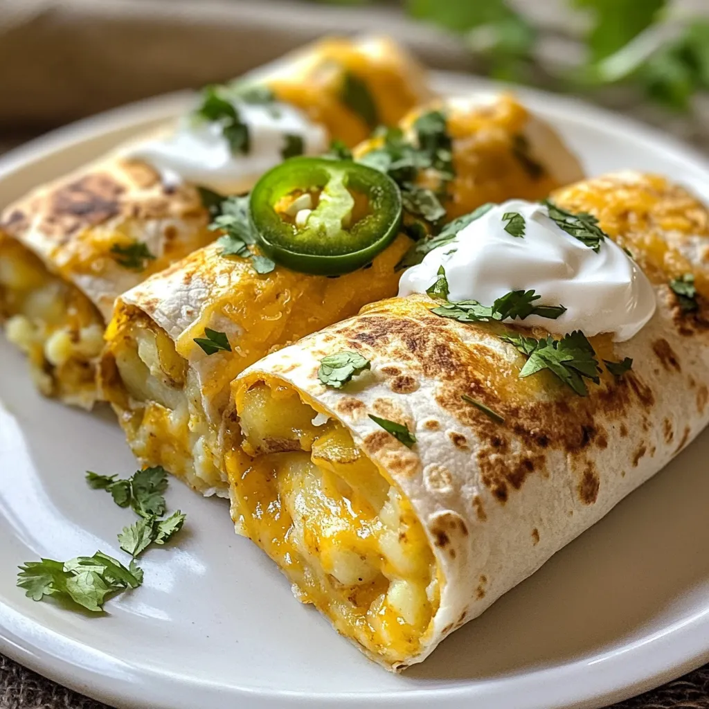 Delicious burritos filled with cheesy mashed potatoes and spices, perfect for a satisfying meal.