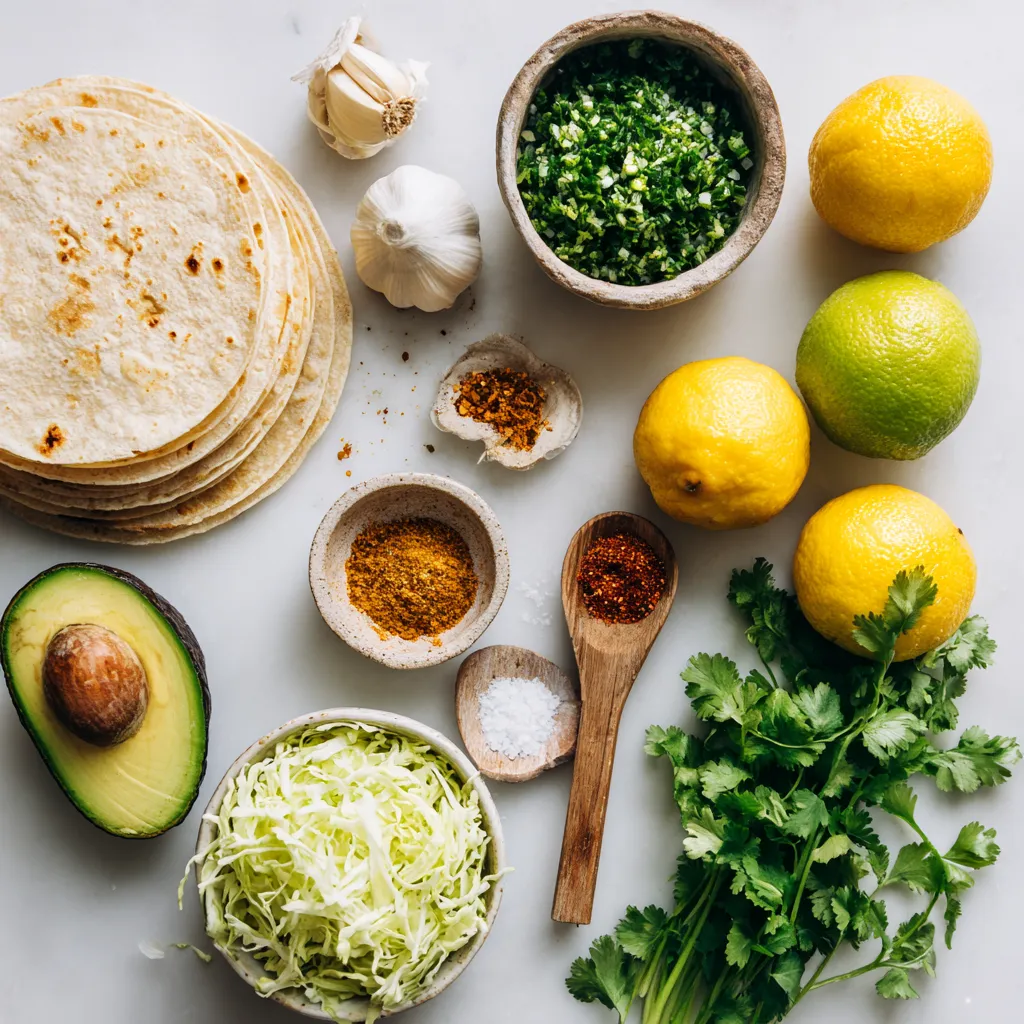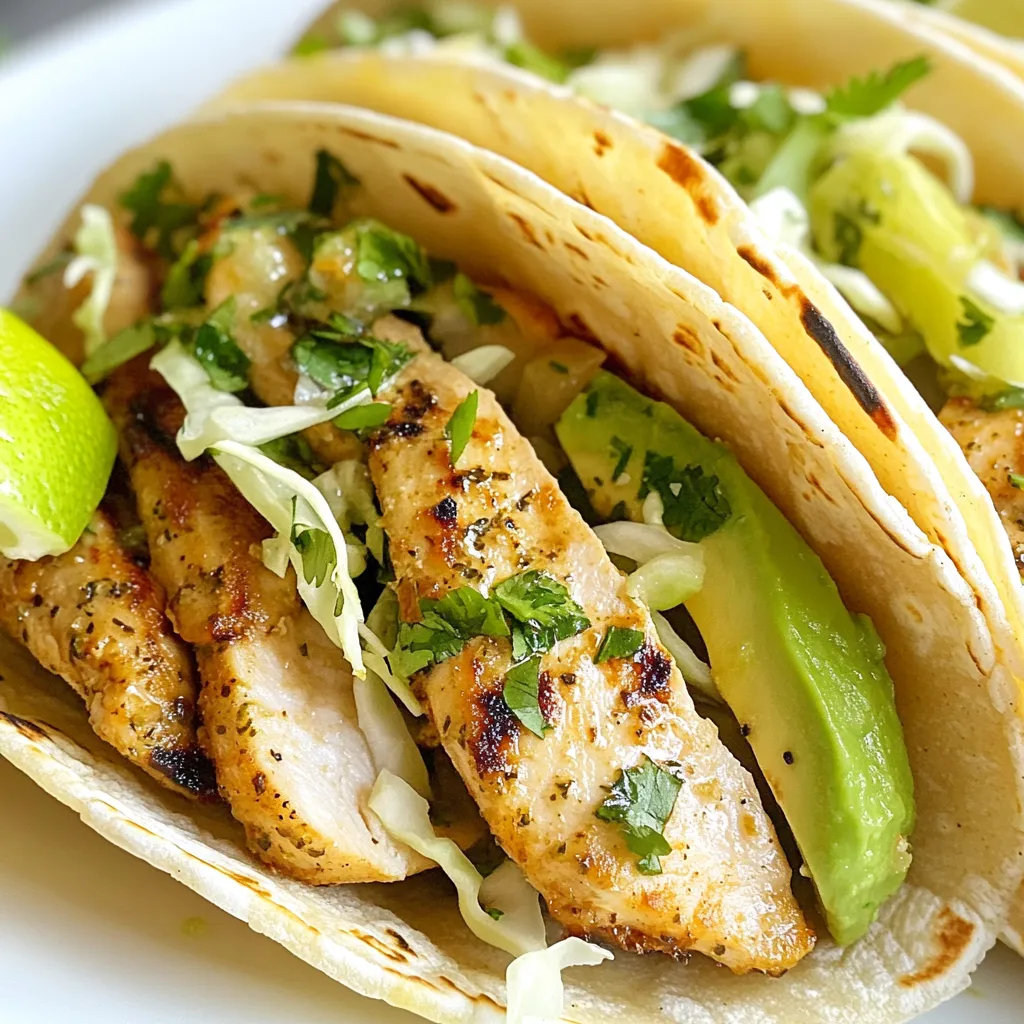 The main ingredients for these tacos create a fresh and zesty flavor. The chicken breasts are the heart of the dish. They soak in a marinade made from lime juice, cilantro, garlic, and spices. Lime juice gives the chicken a bright taste. Fresh cilantro adds a burst of herbal goodness. Each spice plays a role in building flavor. Cumin adds warmth, while chili powder brings a little heat.