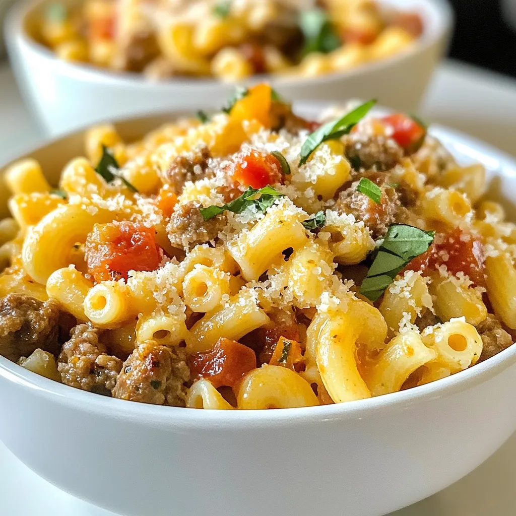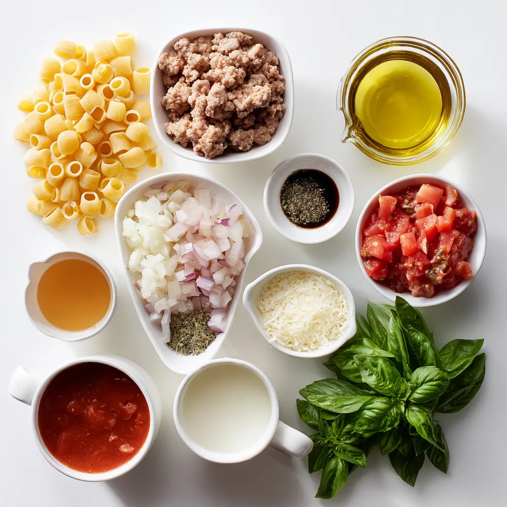 - 12 oz ditalini pasta - 1 lb Italian sausage (choose sweet or spicy according to preference, with casings removed) - 1 medium onion, finely chopped - 2 cloves garlic, minced - 1 cup heavy cream - 1 cup chicken broth - 1 cup diced tomatoes, canned (including juices for added flavor) - 1 teaspoon dried Italian herbs (a mix of oregano, basil, and thyme) - Salt and freshly cracked pepper to taste - ½ cup grated Parmesan cheese - 2 tablespoons olive oil - Fresh basil leaves for garnish For this creamy Marry Me ditalini sausage pasta, each ingredient plays a key role. The ditalini pasta adds a fun shape, catching the sauce perfectly. The Italian sausage is the star, providing rich flavor. You can choose sweet or spicy sausage based on your taste. Onions and garlic bring depth to the dish. They sauté together to create a lovely base. Heavy cream and chicken broth combine to form a smooth, luscious sauce. Diced tomatoes add a burst of sweetness and acidity. Dried Italian herbs enhance the sauce's flavor, while salt and pepper balance everything. Finally, Parmesan cheese adds a salty, nutty finish. Fresh basil leaves on top make the dish look beautiful and fresh. Gather these ingredients, and you will create a delightful meal that truly shines! {{ingredient_image_2}} Boiling and Draining Start by filling a large pot with water. Add a generous amount of salt and bring it to a boil. Once boiling, add 12 oz of ditalini pasta. Cook according to the package directions until it's al dente. This usually takes about 8 to 10 minutes. When done, drain the pasta in a colander. Remember to save about 1 cup of the pasta water for later. Reserving Pasta Water The reserved pasta water is key for the sauce. It has starch that helps thicken the sauce and makes it creamy. Set it aside while you cook the sausage. Browning Technique In a large skillet, heat 2 tablespoons of olive oil over medium heat. Once hot, add 1 lb of Italian sausage, removing the casings first. Use a wooden spoon to break it up into smaller pieces. Cook for about 5 to 7 minutes until it's nicely browned. Managing Heat Keep an eye on the heat. If the sausage browns too fast, lower the heat. You want it cooked through but not burnt. Stir it often for even cooking. Adding Vegetables After the sausage is browned, add 1 finely chopped medium onion. Sauté it for about 3 to 4 minutes until it turns translucent. Then, add 2 minced garlic cloves and cook for another minute. The smell will be amazing! Combining Cream and Broth Next, pour in 1 cup of chicken broth and 1 cup of heavy cream. Add 1 cup of diced tomatoes, including their juices. Sprinkle in 1 teaspoon of dried Italian herbs, along with salt and cracked pepper to taste. Stir everything together and let it simmer for about 5 minutes. This helps the flavors mix well. Incorporating Ditalini Now, it’s time to add the drained ditalini pasta to the skillet. Gently toss the pasta in the sauce until well coated. Adjusting Sauce Consistency If the sauce seems too thick, add the reserved pasta water a little at a time. Stir until you reach the creamy consistency you like. Adding Cheese Stir in ½ cup of grated Parmesan cheese. This will melt into the sauce, making it even richer. Final Taste Adjustments Taste your pasta and adjust the seasoning with more salt and pepper if needed. This is your dish, so make it perfect for your palate! Choosing the right sausage is key for great flavor. You can go with sweet or spicy sausage. - Sweet Sausage: This type has a mild flavor. It works well for those who enjoy a gentle taste. - Spicy Sausage: If you like heat, this is for you. It adds a nice kick to the dish. For a great taste, I recommend using Italian sausage. It's flavorful and pairs well with the creamy sauce. To get that perfect creamy sauce, follow these tips. - Tips for Sauce Thickness: Start with heavy cream and chicken broth. This gives a rich base. If it seems too thick, you can adjust it easily. - Pasta Water Utilization: Save some pasta cooking water. Adding a splash to the sauce helps thin it out. It also makes the sauce cling to the pasta better. Presentation can make your dish shine. Here are some ideas. - Ideal Pairings: This pasta goes great with a side salad. A simple green salad adds fresh crunch. Add garlic bread for a comforting touch. - Presentation Tips: Use bowls for serving. Garnish with fresh basil leaves and a sprinkle of Parmesan. This makes the dish look extra special. Pro Tips Choose Your Sausage Wisely: Selecting the right type of Italian sausage can significantly impact the flavor of your dish. Opt for sweet sausage for a milder taste or spicy sausage for a kick of heat. Reserve Pasta Water: Always save a cup of the pasta cooking water before draining. This starchy water can be added to the sauce to adjust its consistency, ensuring it clings beautifully to the pasta. Fresh Herbs Matter: While dried Italian herbs are convenient, fresh basil can elevate the dish's flavor profile. Add it just before serving for a burst of freshness. Don’t Overcook the Pasta: Cooking the ditalini until al dente ensures it retains a pleasant bite and won't become mushy when mixed with the sauce. {{image_4}} You can make this dish even better by adding vegetables. Spinach or kale are great choices. They add color and nutrients. Just toss them in during the last few minutes of cooking. Bell peppers are another option. Chop them up and sauté with the sausage. They bring a sweet crunch to the dish. If you want a lighter meal, try chicken or turkey sausage. Both can replace the Italian sausage. They offer great flavor without the extra fat. For a vegetarian option, use plant-based sausage. It gives you the same taste without meat. You can also add beans for protein and texture. You can mix it up with different cheeses. Cheddar or mozzarella will work well too. They bring a unique flavor to the dish. If you need a dairy-free option, try nutritional yeast. It adds a cheesy taste without the dairy.