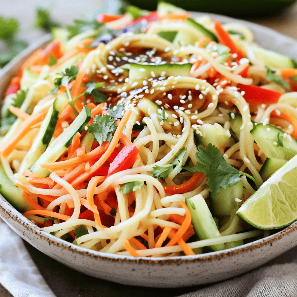 Yes, you can make this salad ahead of time. I often prepare it a few hours in advance. The flavors blend well when they sit. Just keep it in the fridge until you’re ready to serve. If you plan to store it overnight, hold off on adding the dressing until just before eating. This keeps the noodles and veggies crisp.