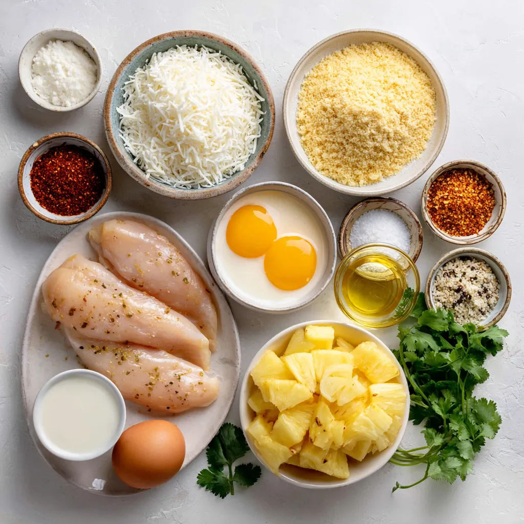 You can easily swap some ingredients if needed. For chicken, use turkey breasts for a leaner option. Almond flour or crushed nuts can replace panko for a gluten-free version. If you dislike coconut, try using crushed cornflakes or breadcrumbs. You can skip the cheese for a dairy-free meal. Instead of pineapple, mango slices offer a similar taste. For the garnish, parsley can replace cilantro if you prefer a milder flavor. These swaps keep the dish simple and delightful while suiting different tastes.