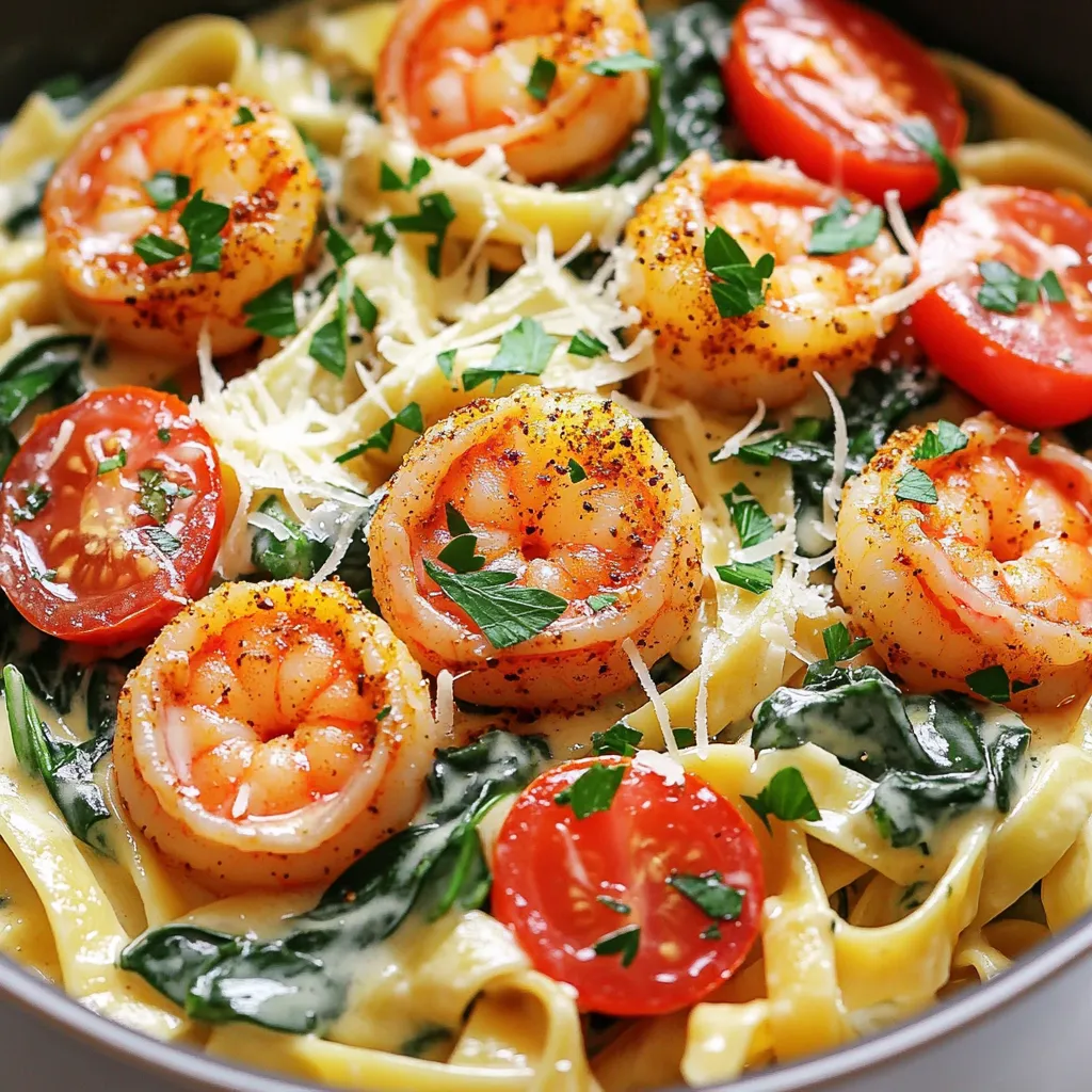 Each ingredient plays a big role in this dish. The shrimp bring a sweet flavor, while the Cajun seasoning gives it a nice kick. Olive oil adds richness, and garlic brings depth. Heavy cream and chicken broth create a smooth sauce. Fettuccine pasta soaks up all the flavors. The Parmesan cheese adds creaminess, and tomatoes and spinach brighten the dish. You can season with salt and pepper to your taste. Finally, fresh parsley makes it look pretty.
