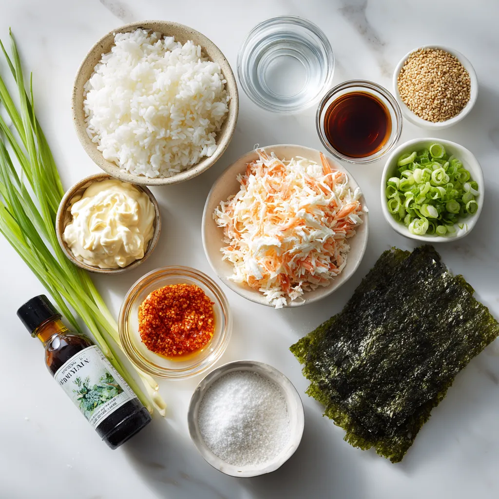 These ingredients create a creamy and savory base for your dish. The sushi rice gives it the right texture, while the imitation crab meat adds that classic seafood flavor.