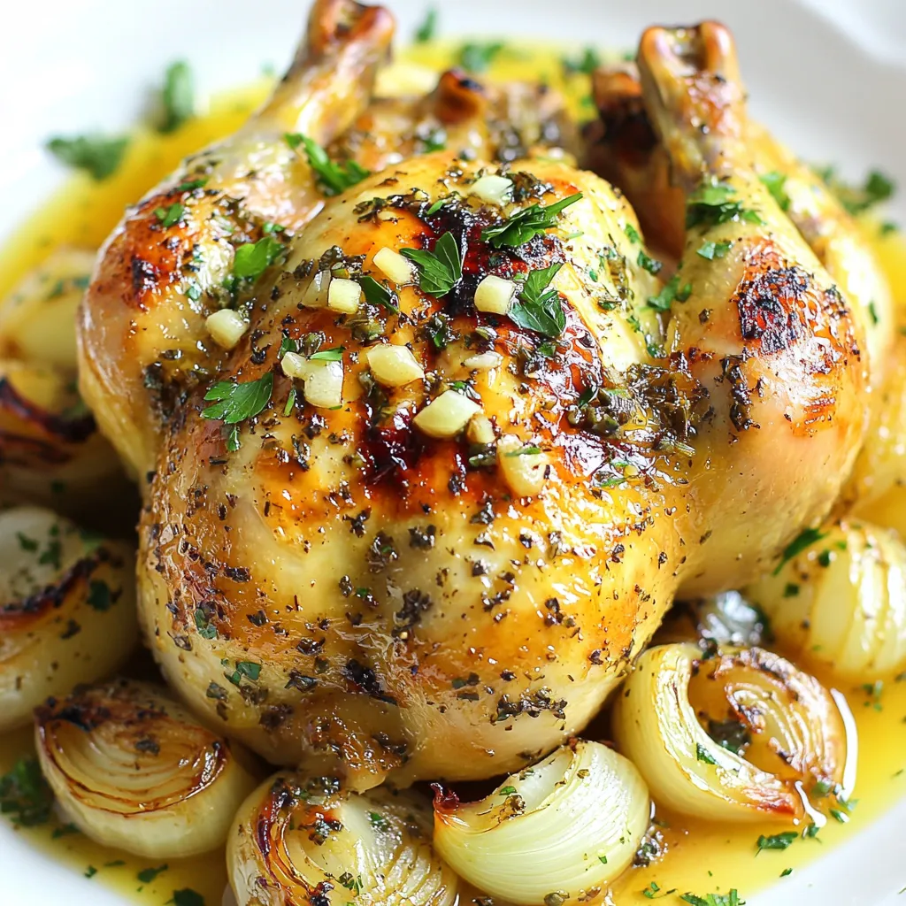 A flavorful roasted chicken infused with garlic and herbs, perfect for garlic lovers.