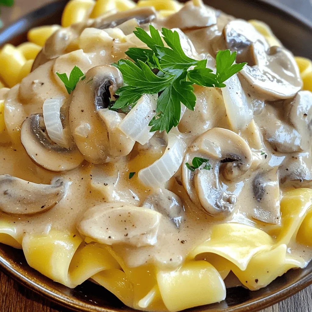 Feel free to experiment with different mushrooms. Shiitake, portobello, or even oyster mushrooms add unique flavors. If you want more texture, try adding spinach or kale. You can also swap spices, like using Italian herbs instead of thyme. This keeps your stroganoff fresh and exciting every time!