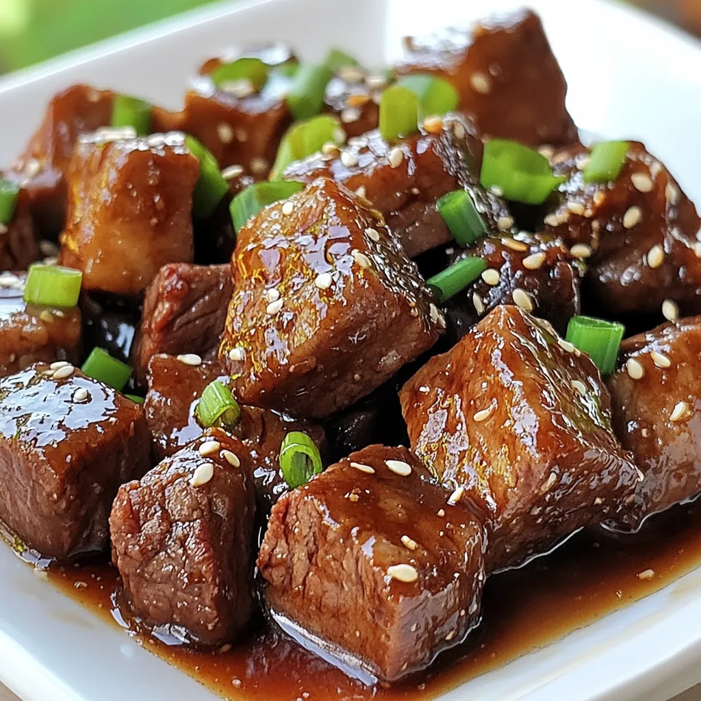 Sweet and sticky steak bites make great appetizers. Serve them on a platter with toothpicks for easy eating. You can also serve them as a main dish. Just add rice or a fresh salad on the side. This will balance the rich flavors. You can drizzle extra sauce over the top for a nice touch.